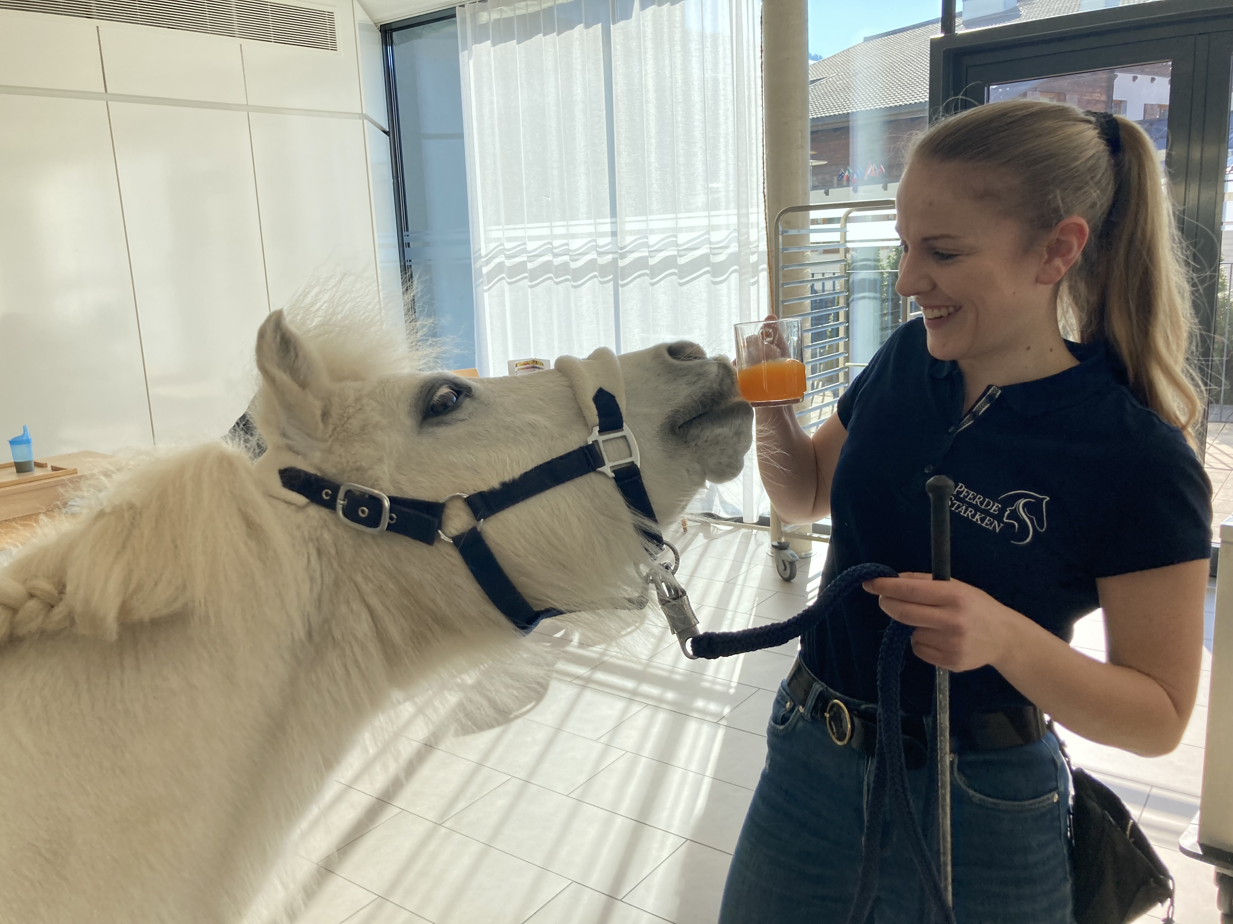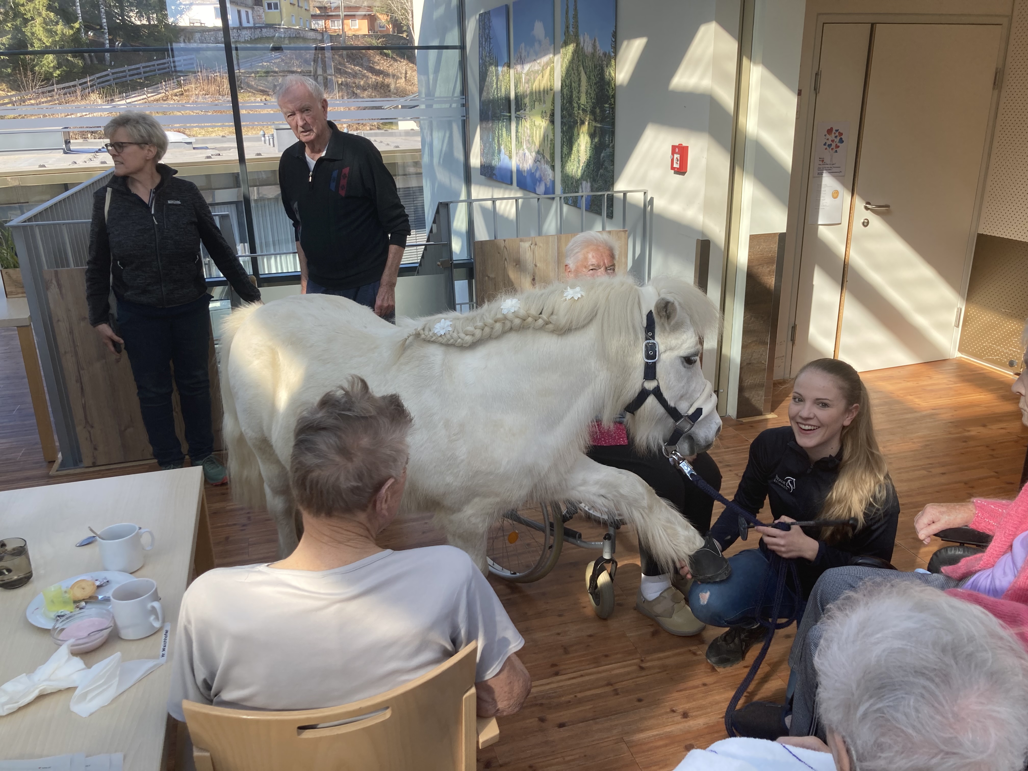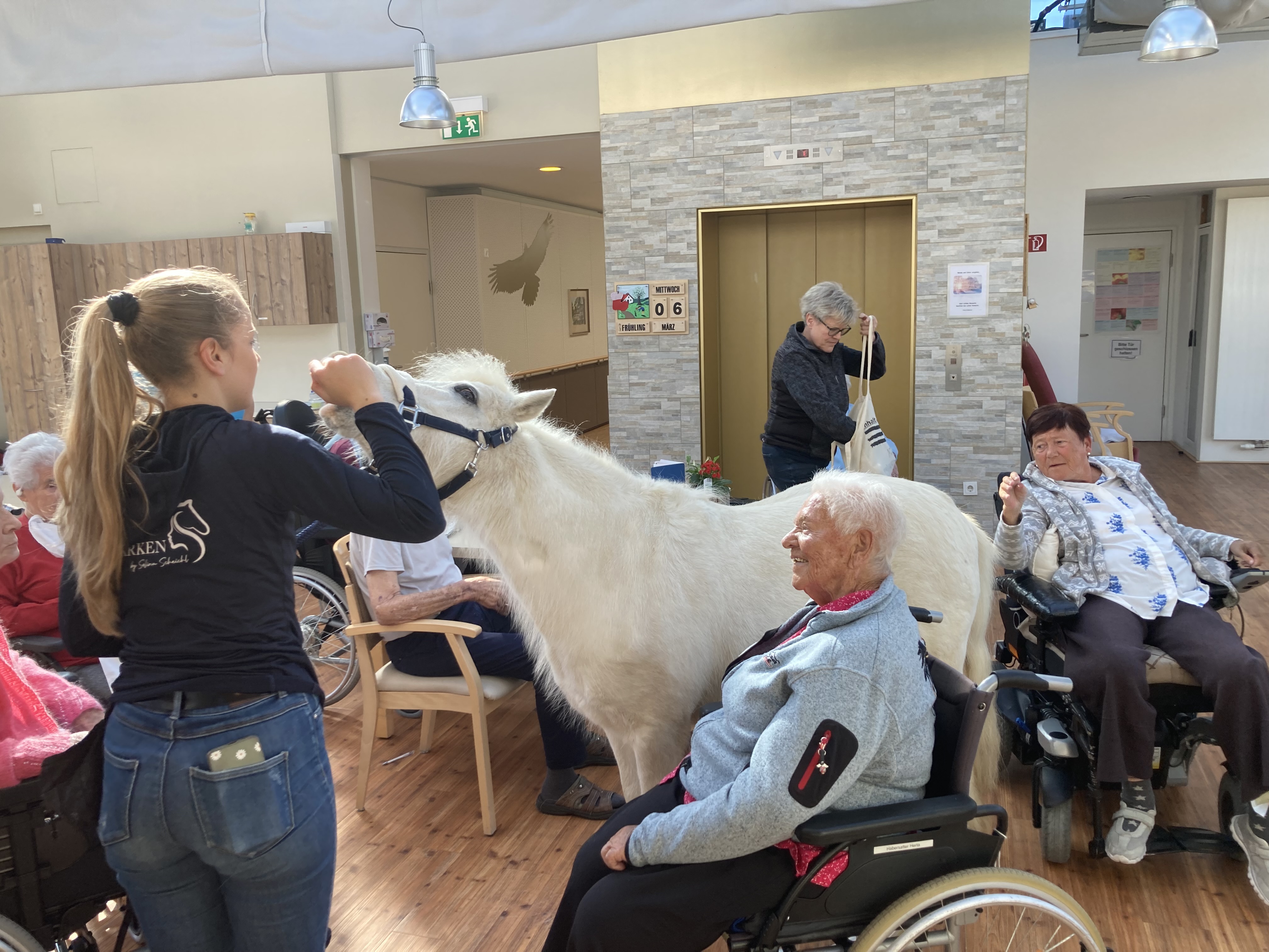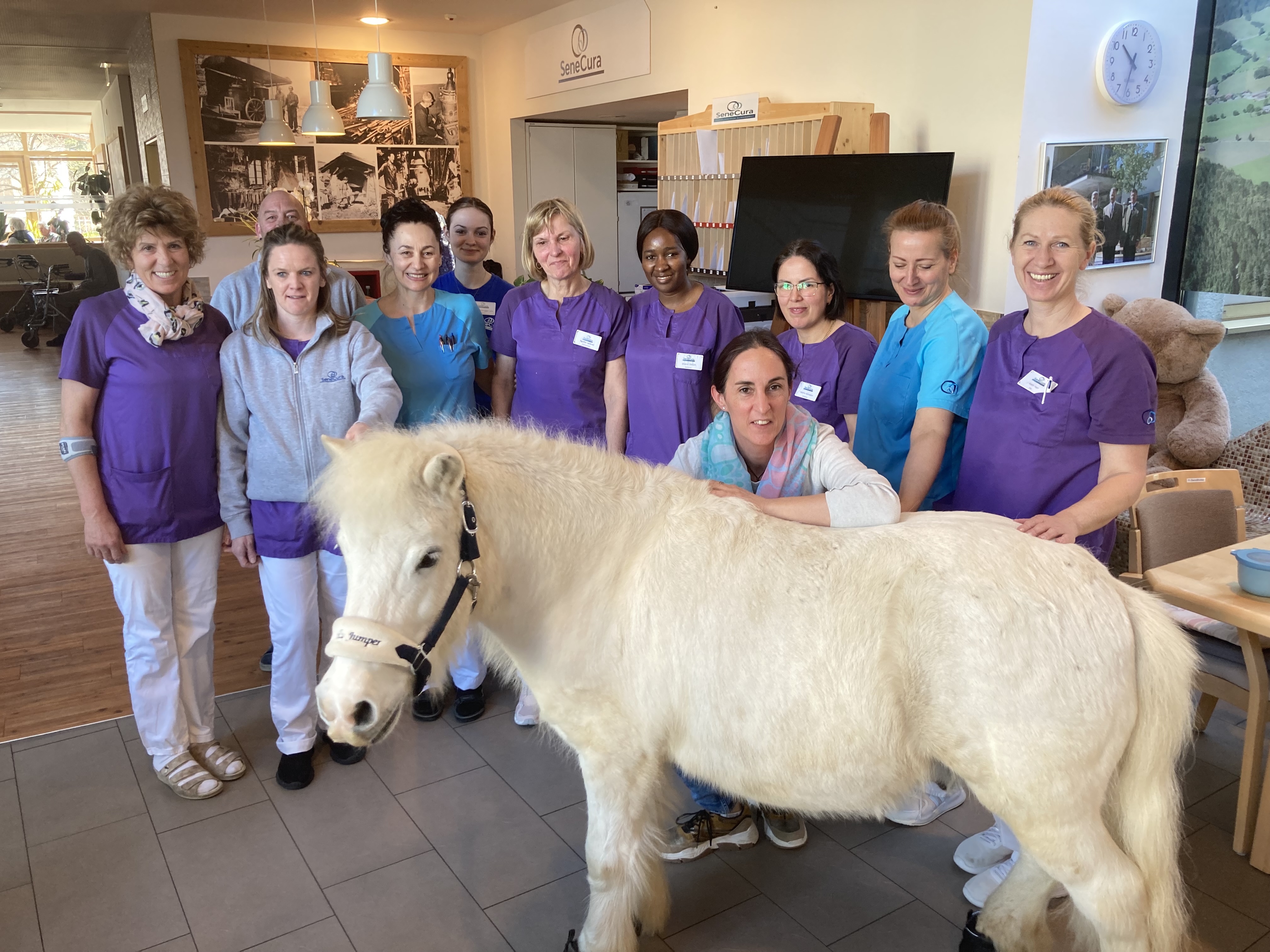 Im März besuchte das Therapiepony „Jolly Jumper“ die Bewohner:innen des SeneCura Sozialzentrums Altenmarkt. Mit den zwei Begleitpersonen war Jolly Jumper im ganzen Haus unterwegs und wollte am liebsten jede:n einzelne:n Bewohner:in begrüßen. Das Therapiepony verzauberte die Bewohner:innen mit seinen Kunststücken und sorgte für viel Spaß und strahlende Augen.