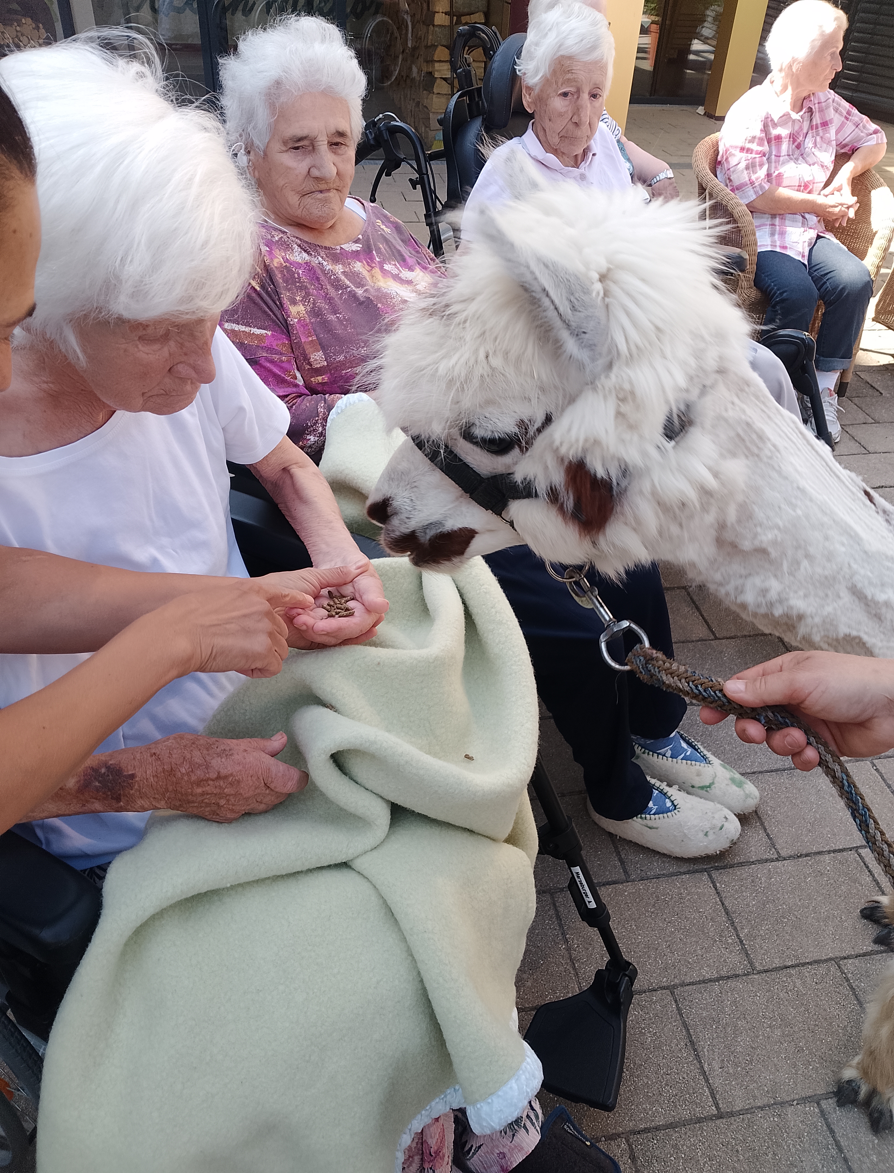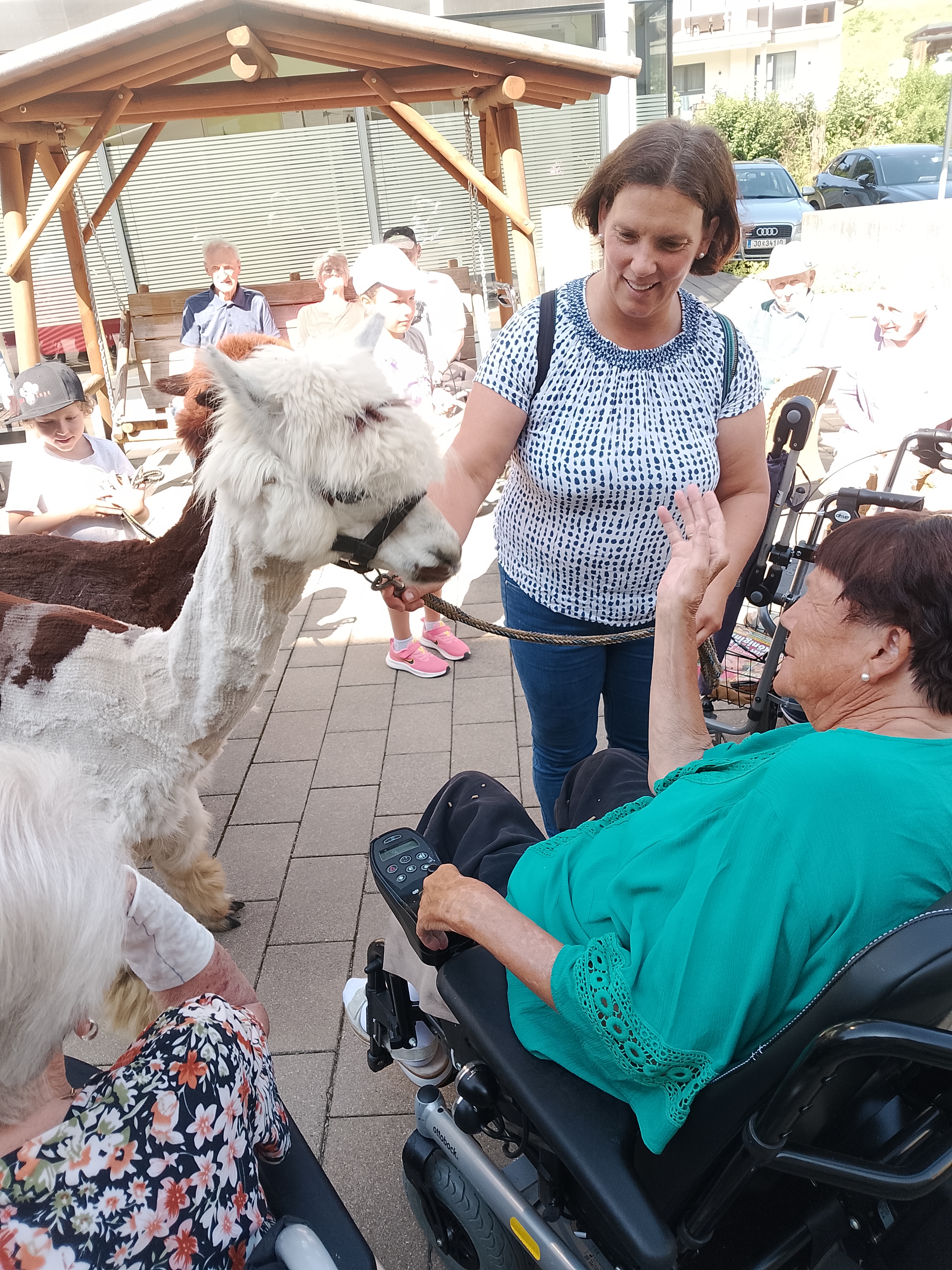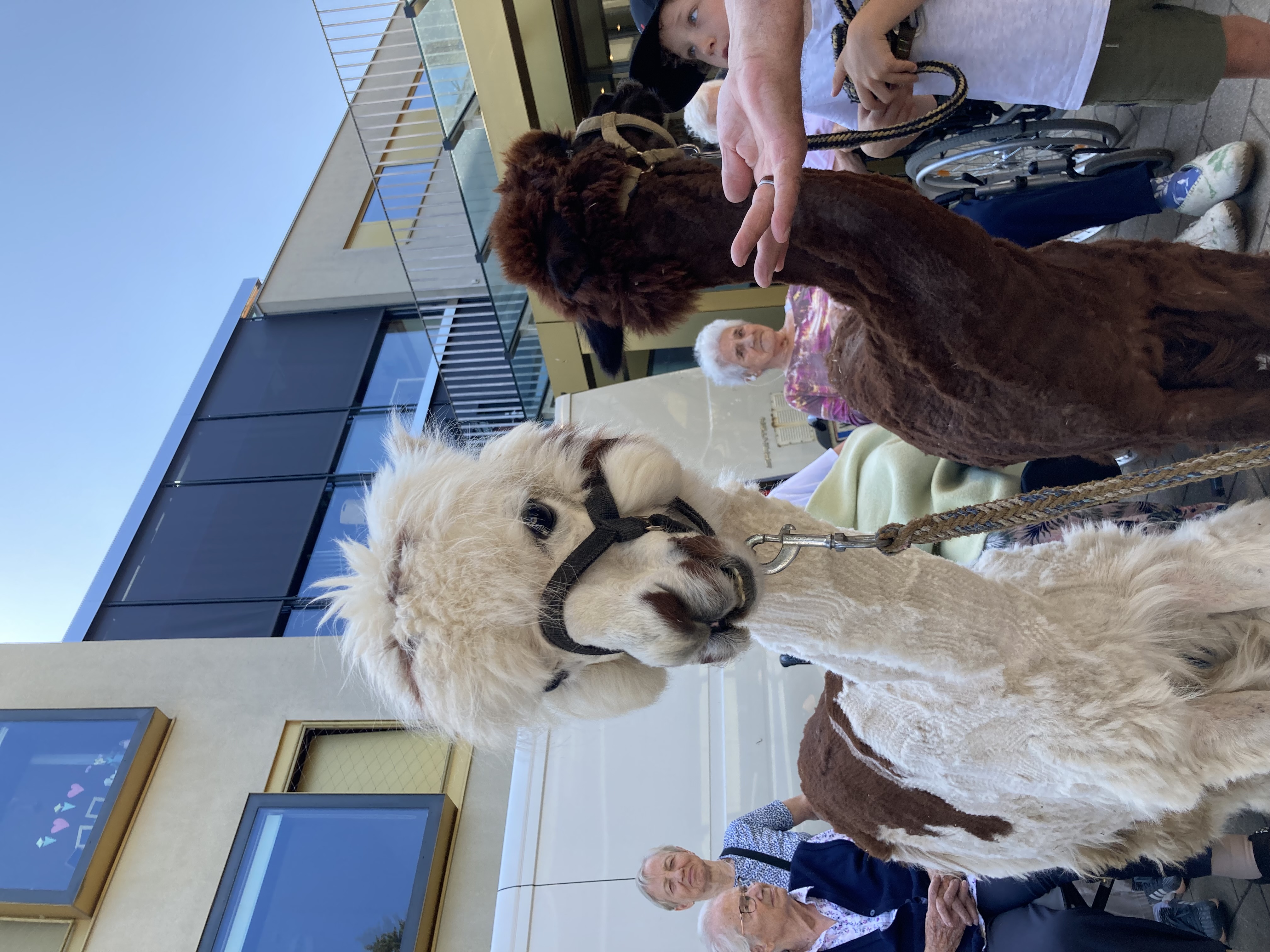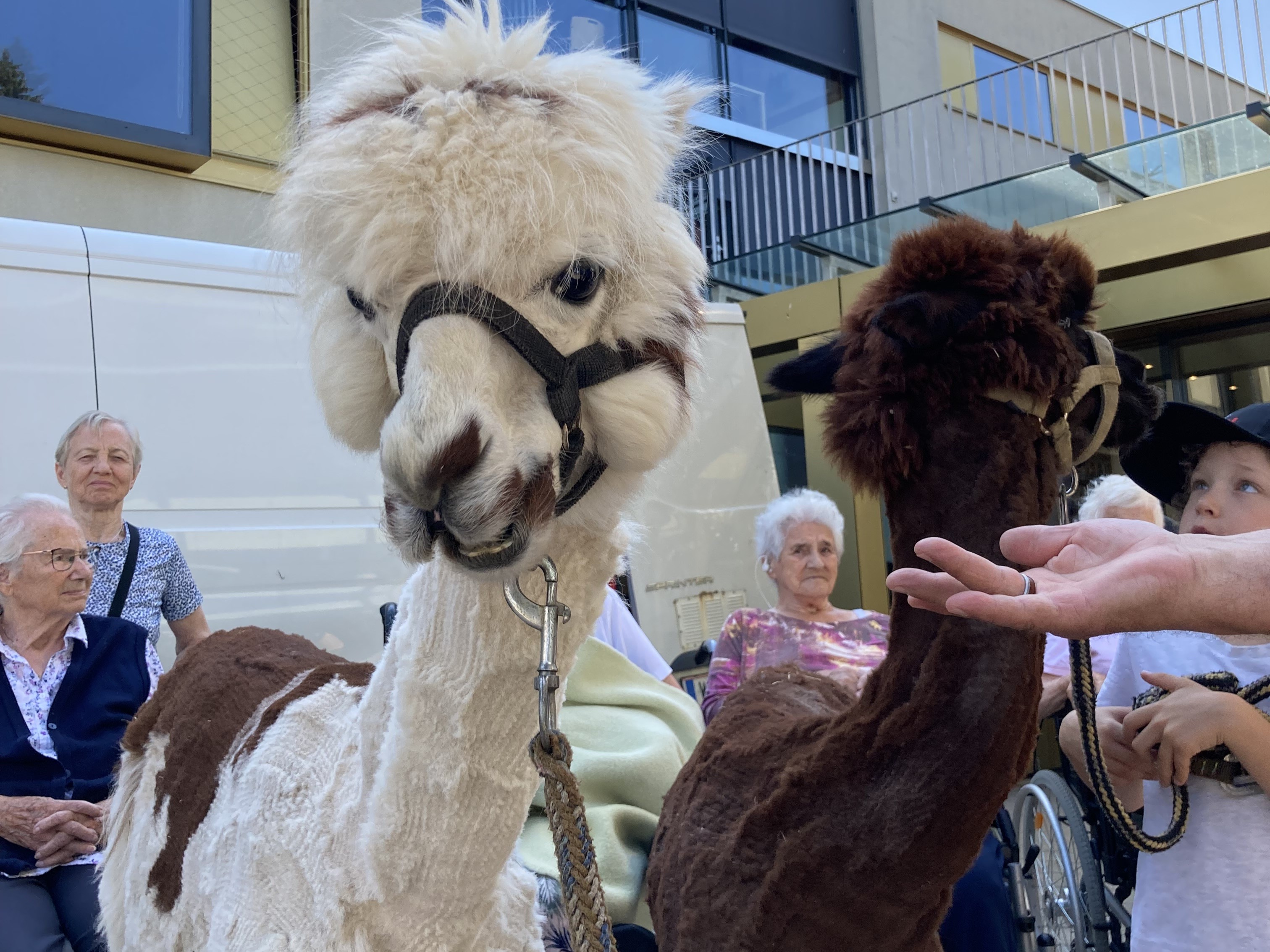 Am Vorplatz des SeneCura Sozialzentrums Altenmarkt war das Staunen groß, als zwei liebevolle und flauschige Alpakas vor kurzem ihren großen Auftritt hatten. Neugierig und begeistert tasteten sich die Bewohner:innen an die weichen Tiere heran und es dauerte nicht lange, da streichelten sie die flauschigen Freund:innen schon. Auch bei der Fütterung durften die Senior:innen tatkräftig unterstützen. Für viele Bewohner:innen war es das erste Mal, dass sie ein Alpaka aus nächster Nähe erleben durften. Die Freude darüber war unbeschreiblich und alle verbrachten einen tollen Nachmittag.