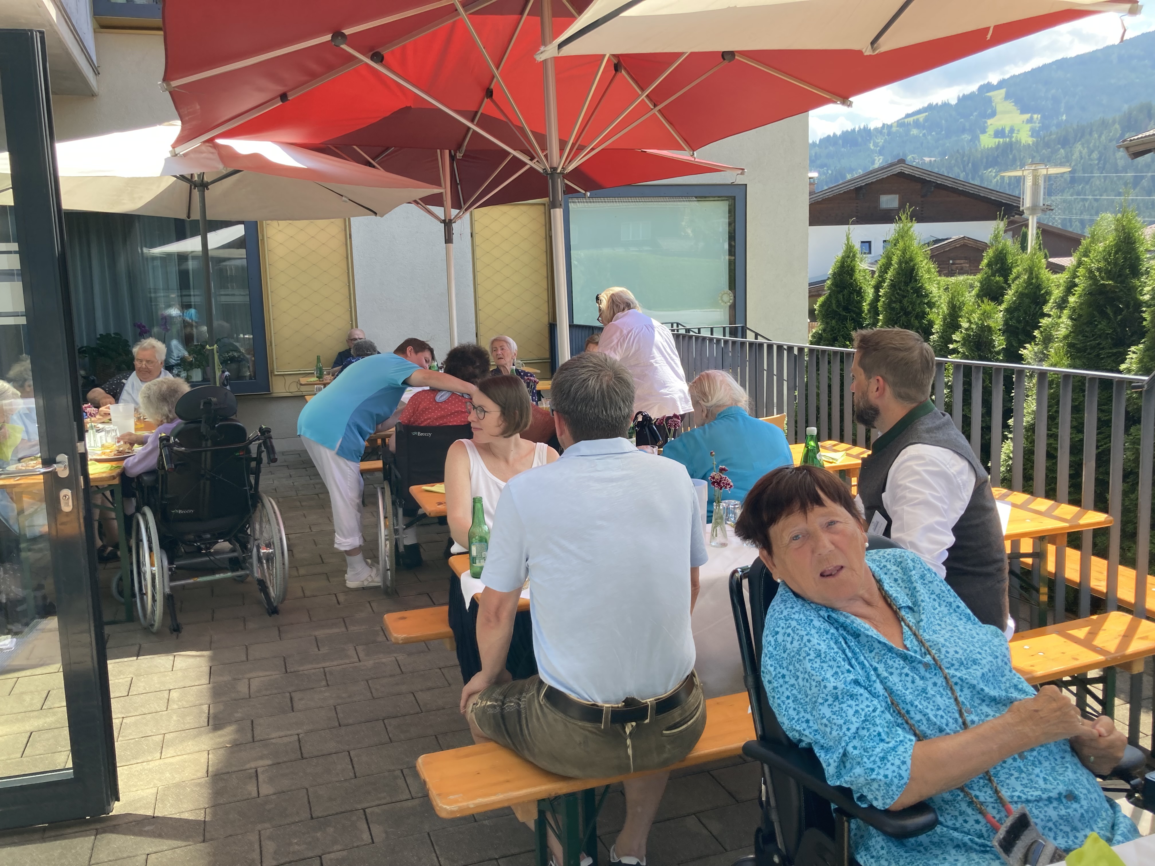 Mitte Juli fand bei wunderschönen Wetter das traditionelle Grillfest im SeneCura Sozialzentrum Altenmarkt statt. Küchenleiterin Jutta und ihr Team zauberten ein schmackhaftes Salatbuffet und herrliche Grillspezialitäten. Die Bewohner:innen waren begeistert und ließen sich die Köstlichkeiten schmecken. Ein junger Ziehharmonikaspieler umrahmte mit zünftigen Liedern das Fest. Alle genossen den sommerlichen Tag sehr und freuen sich auf das nächst Grillfest!
