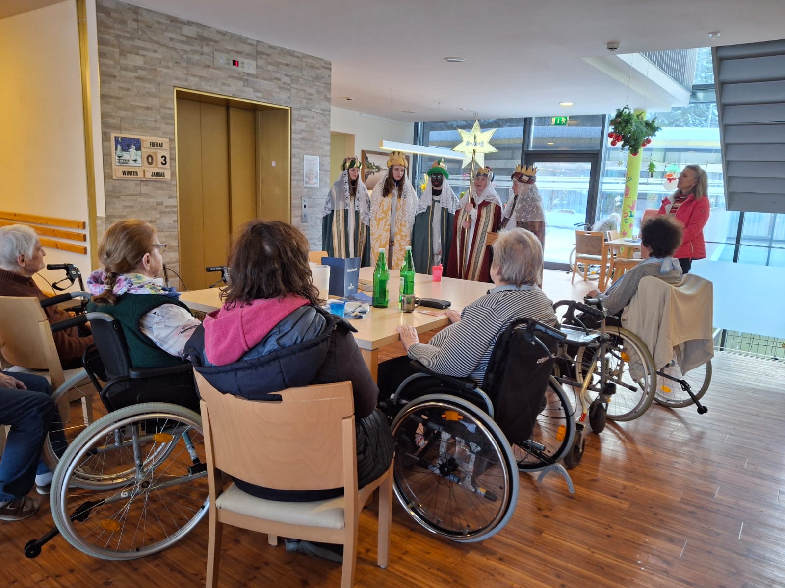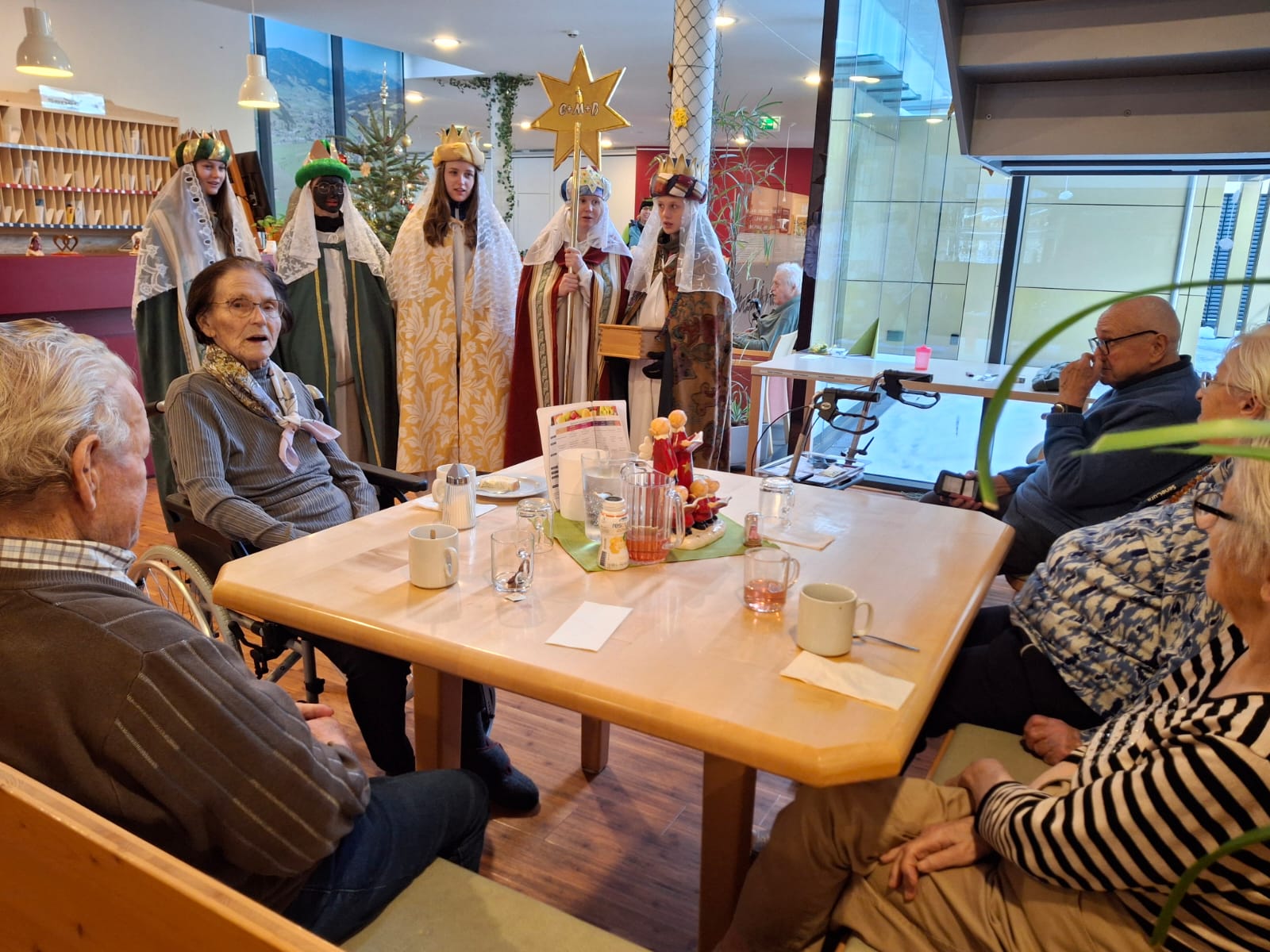 Anfang Jänner war es soweit: Caspar, Melchior und Balthasar – die „Heiligen Drei Könige“ – besuchten mit ihrem Sternträger das SeneCura Sozialzentrum Altenmarkt und überbrachten den traditionellen Segen. Mit klassischen Liedern, stimmungsvollen Gebeten und farbenfrohen Kostümen brachte sie gute Laune unter die anwesenden Bewohner:innen. Unsere Senior:innen freuten sich über die Darbietung und über den mitgebrachten Weihrauch. „Es ist so schön die Sternsinger wieder zu sehen, die Gebete und Lieder waren perfekt einstudiert.“ freute sich eine Bewohnerin des Hauses.