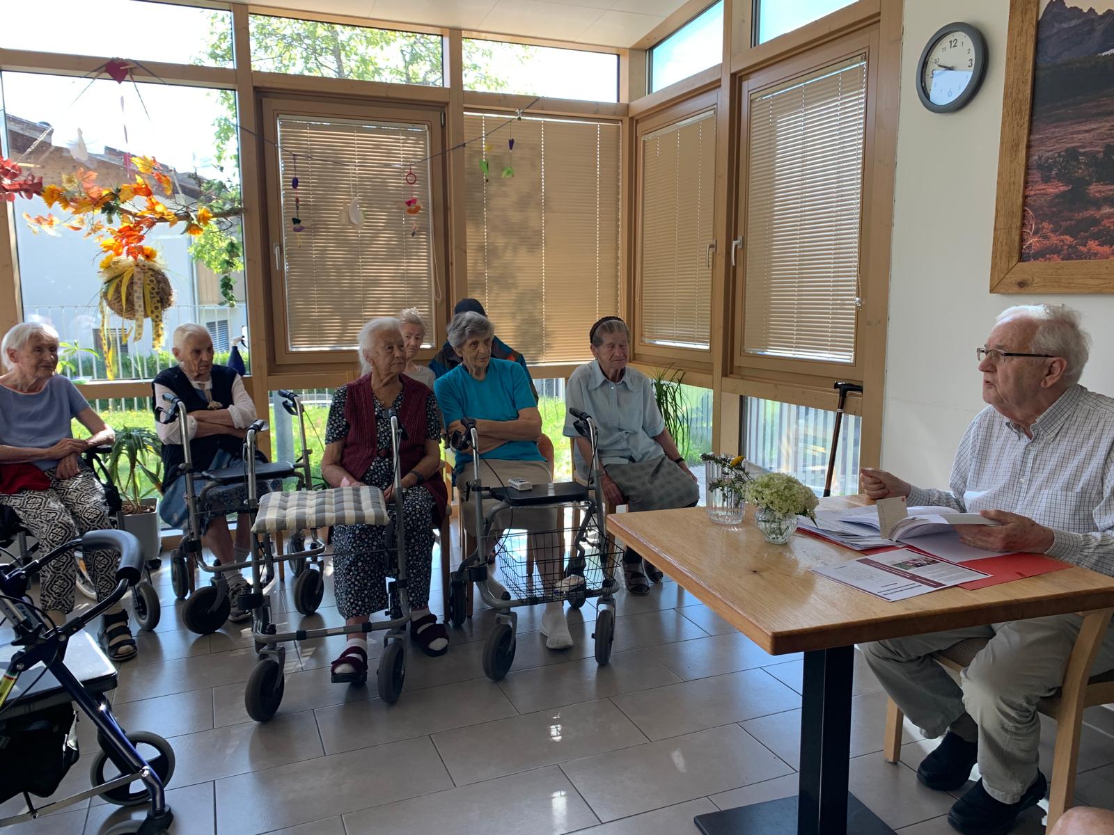 Mit seinen Lesungen, Witzen und Geschichten begeistert er die Seniorinnen und Senioren