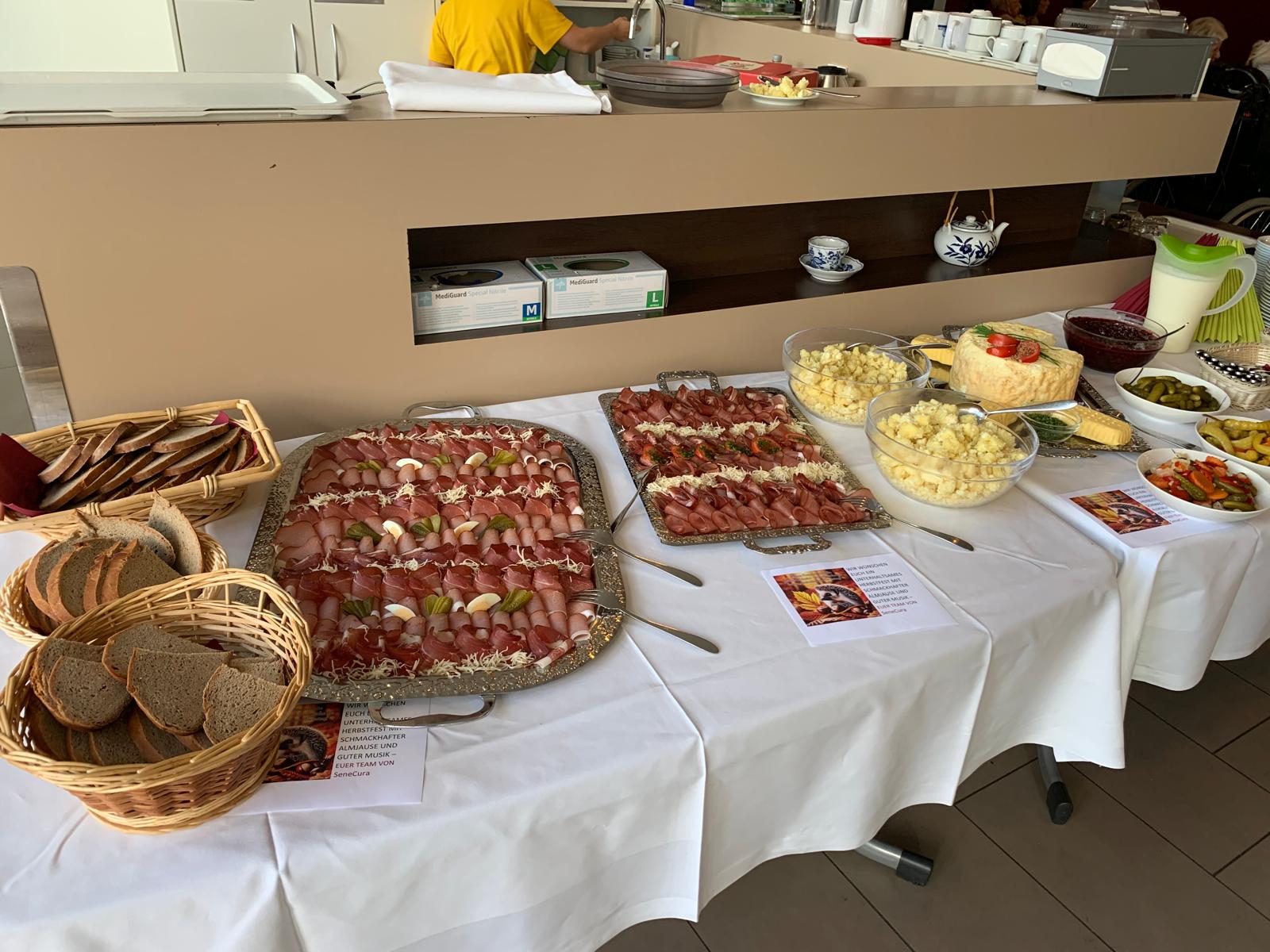 In dieser Woche fand im SeneCura Sozialzentrum Altenmarkt das alljährliche Herbstfest statt. An bunt geschmückten Tischen wurden die Bewohner:innen des Hauses bereits am Nachmittag mit köstlichen Bauernkrapfen und Kaffee verwöhnt. Zudem wurde bei bester musikalischer Unterhaltung gesungen, geplaudert und gelacht. „Einfach ein toller, geselliger Nachmittag – sowas könnten wir täglich machen.“, freute sich eine Bewohnerin. Abschließend gab es noch eine zünftige Bauernjause mit Käse, Speck und Bauernbrot.